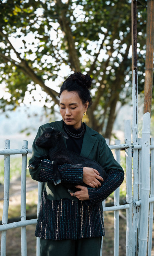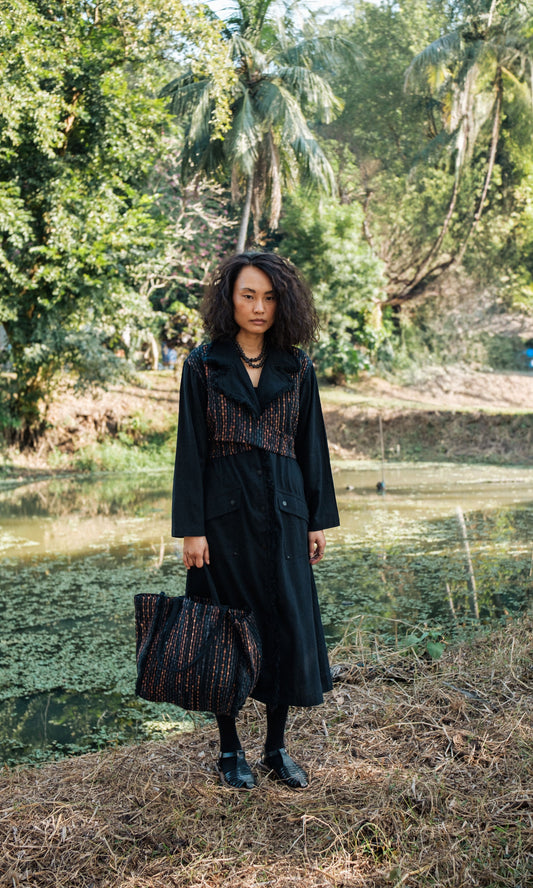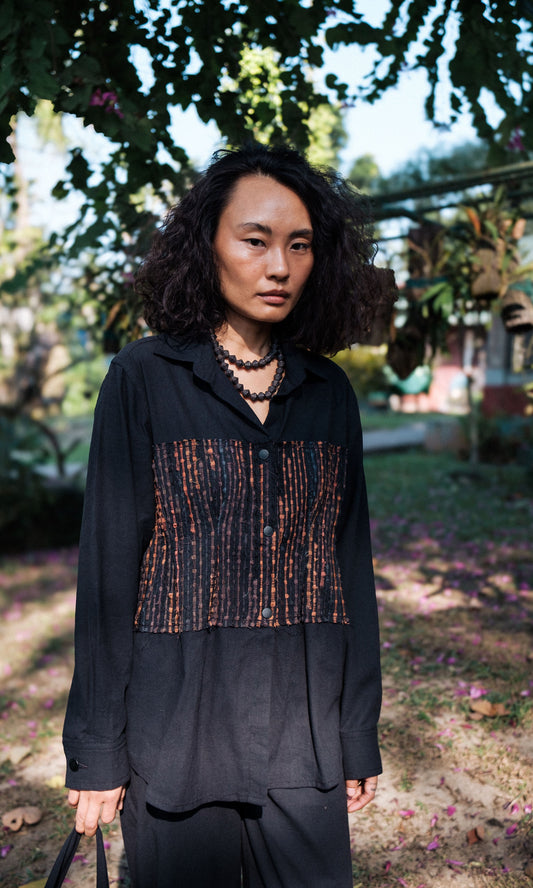 Handwoven Berlin Shawl Collar Top - Black Copper