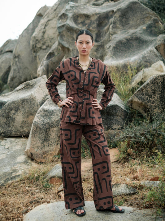 Berlin Shawl collar Top-Mud Print
