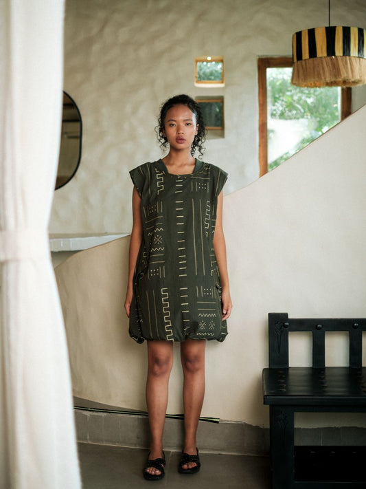 Nara gather dress-Mud Print