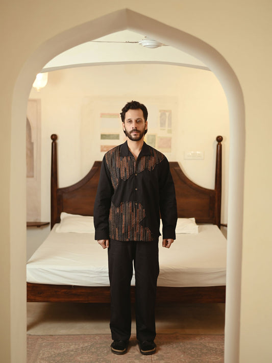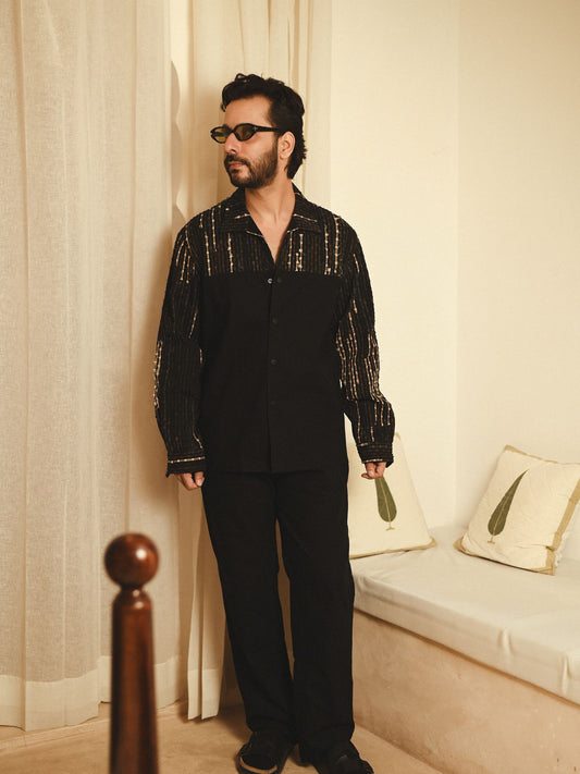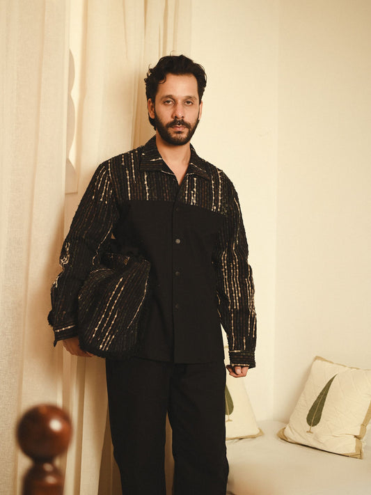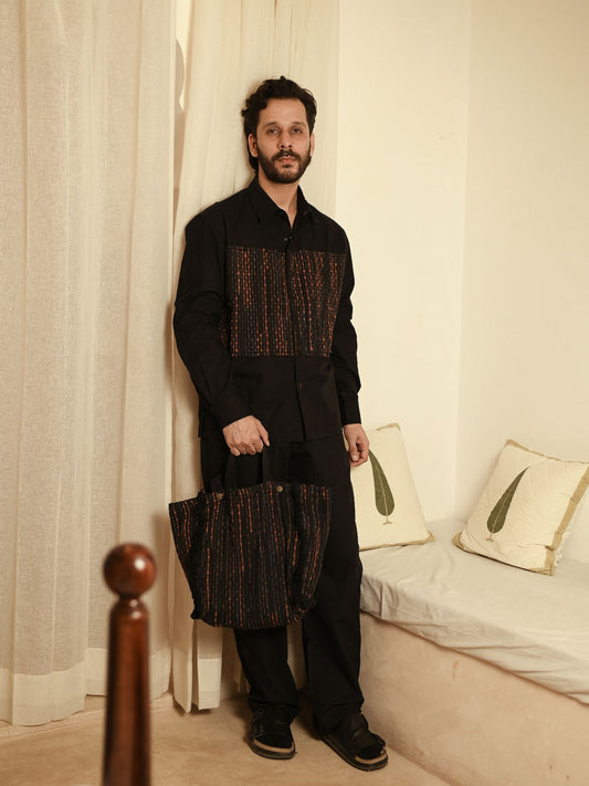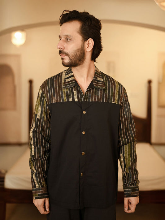 Upcycled Handwoven Arrow collar shirt - Black