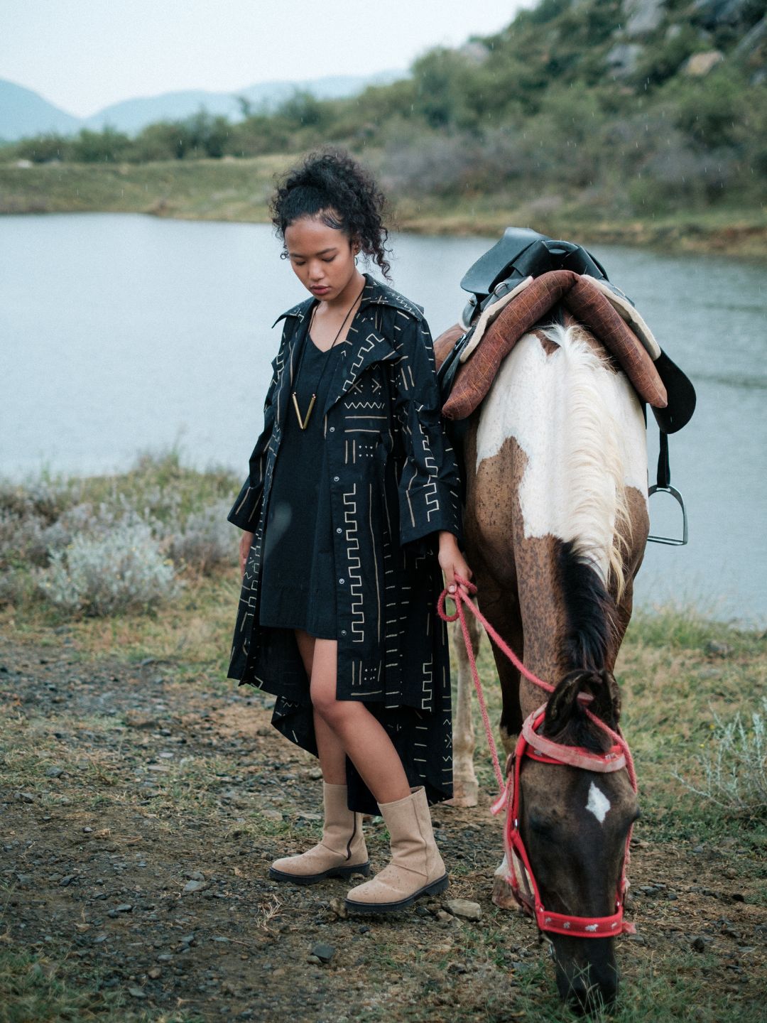 This incredibly versatile trench coat showcases a refined exaggerated collar, a classic button-down front, and print inspirated from african mud cloth. Its timeless design transcends the seasons, making it a wardrobe staple for year-round wear.