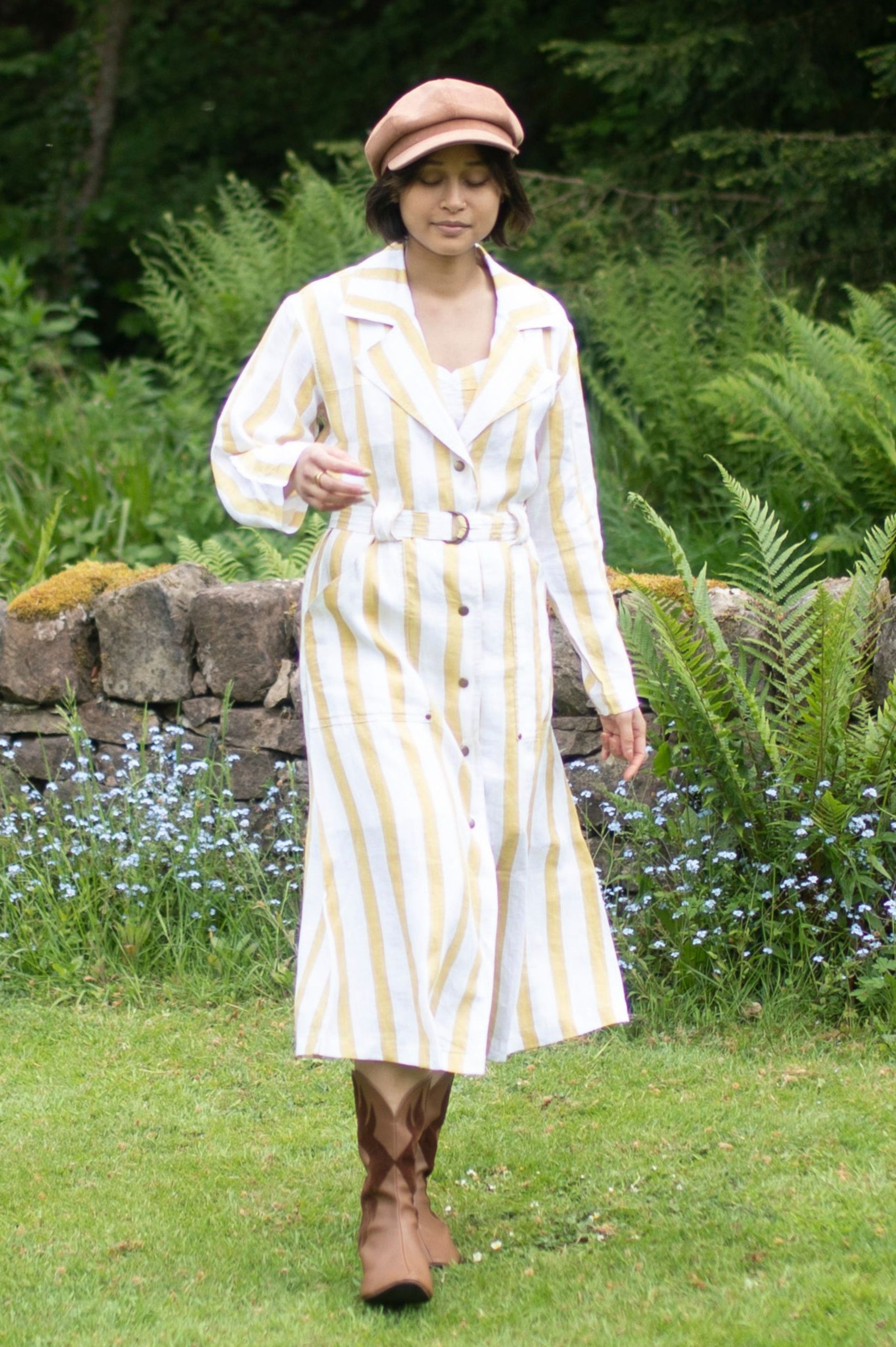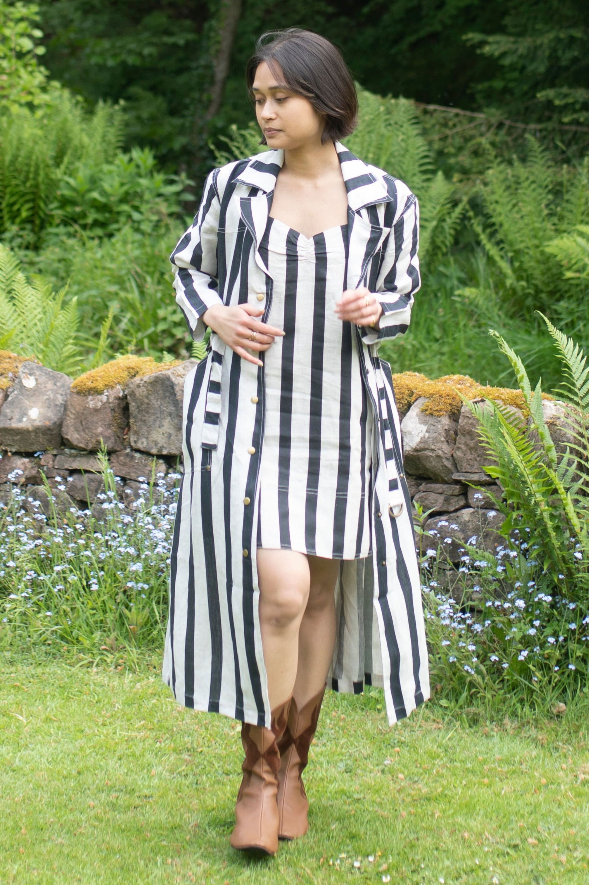 This versatile trench Jacket featuring notch collar, button down front and belt to cinch the waist is a perfect transitional jacket. Style it up as outwear or just as a dress.