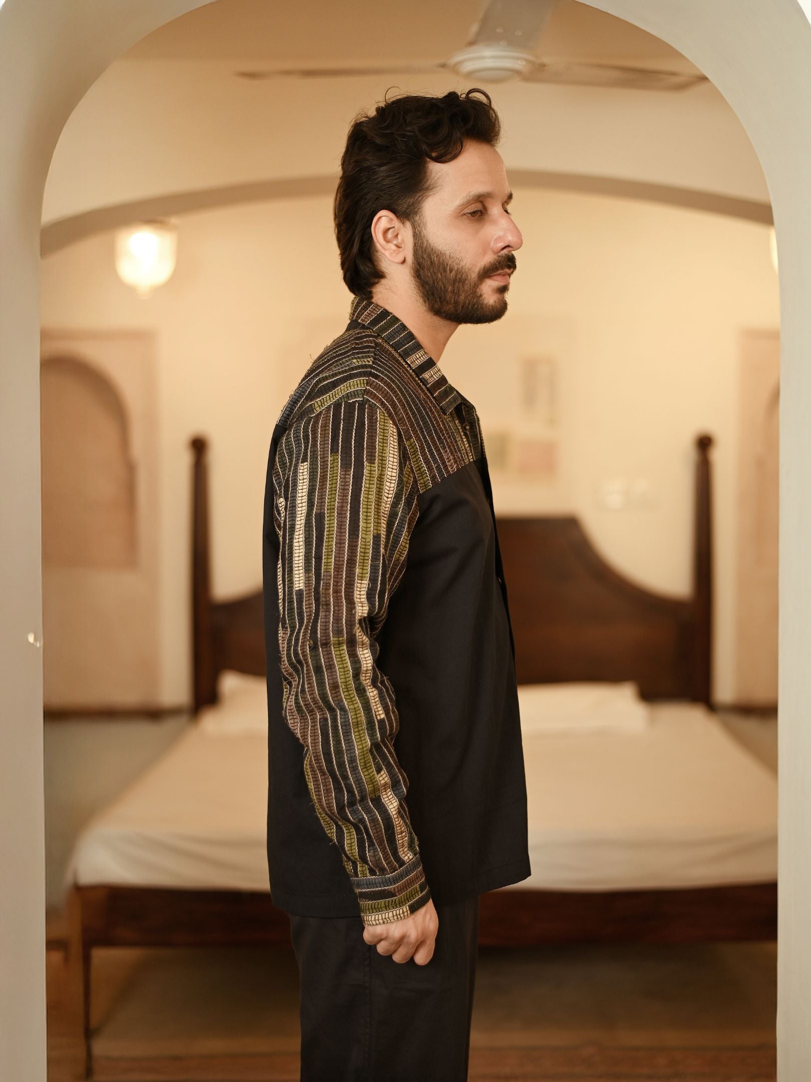 This shirt is our answer to a perfectly tailored shirt made with upcycled fabric, using post production waste and a panelling detail for the most beautiful fit.
