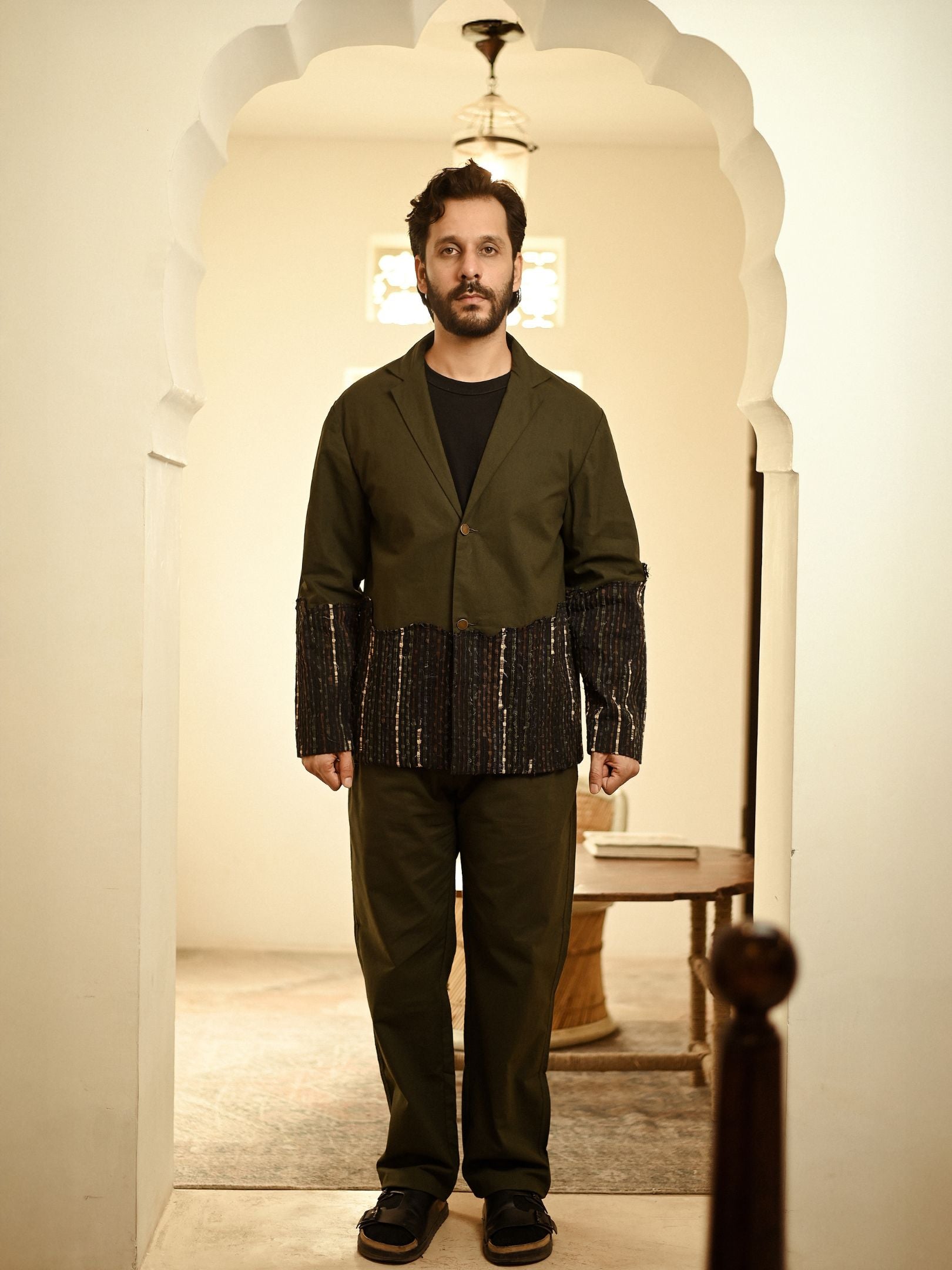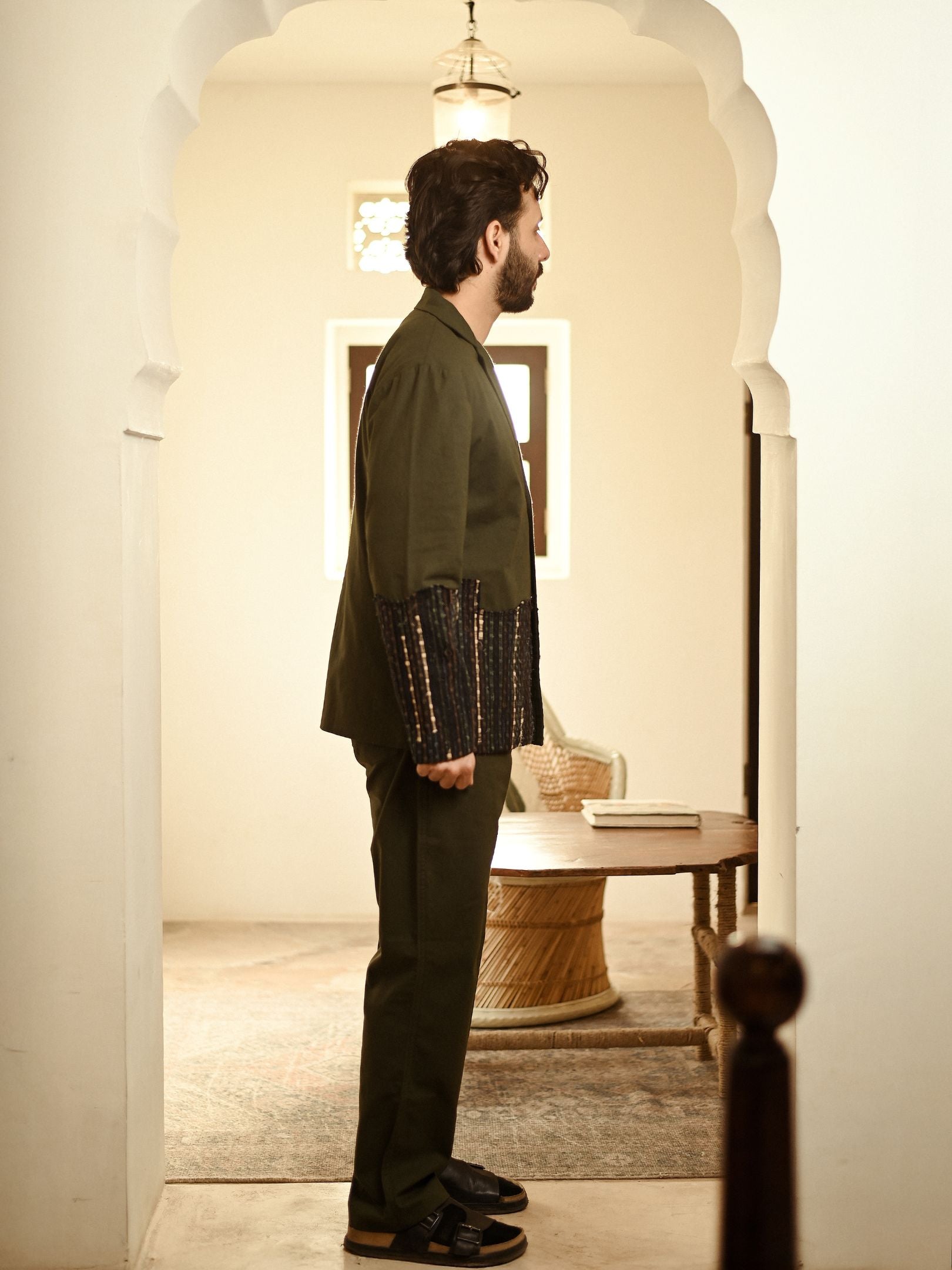 Upcycled Handwoven Ying Yang Blazer Set - Green